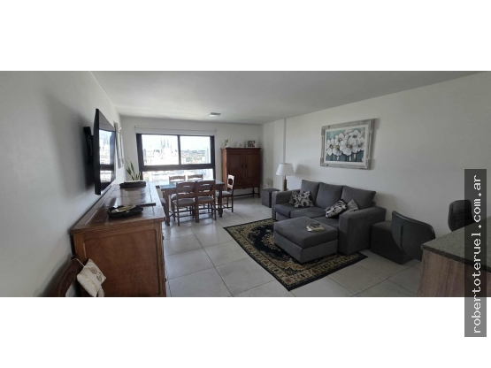 Amplio living comedor súper luminoso, con vista abierta. Equipado con sofá, mesa con sillas, TV con cable y Wi-Fi.